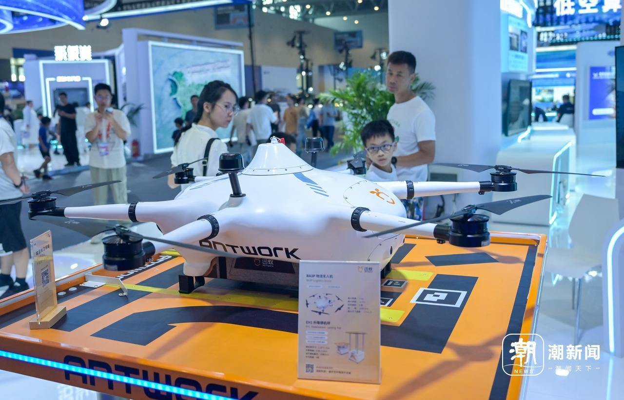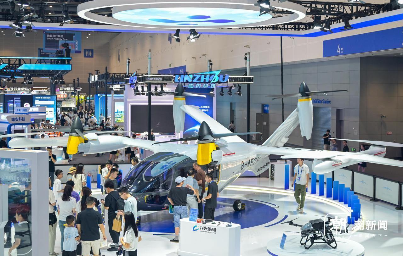 在第四届数贸会数智出行馆内,低空经济展区成为全场焦点,集中展示了一批技术领先的低空飞行产品与解决方案。轻翼航空的岚鹰飞机、沃飞长空的AE200电动垂直起降飞行器、天目山实验室的智能单人飞行器Vortex-F1等创新机型,吸引了大量采购商驻足交流。