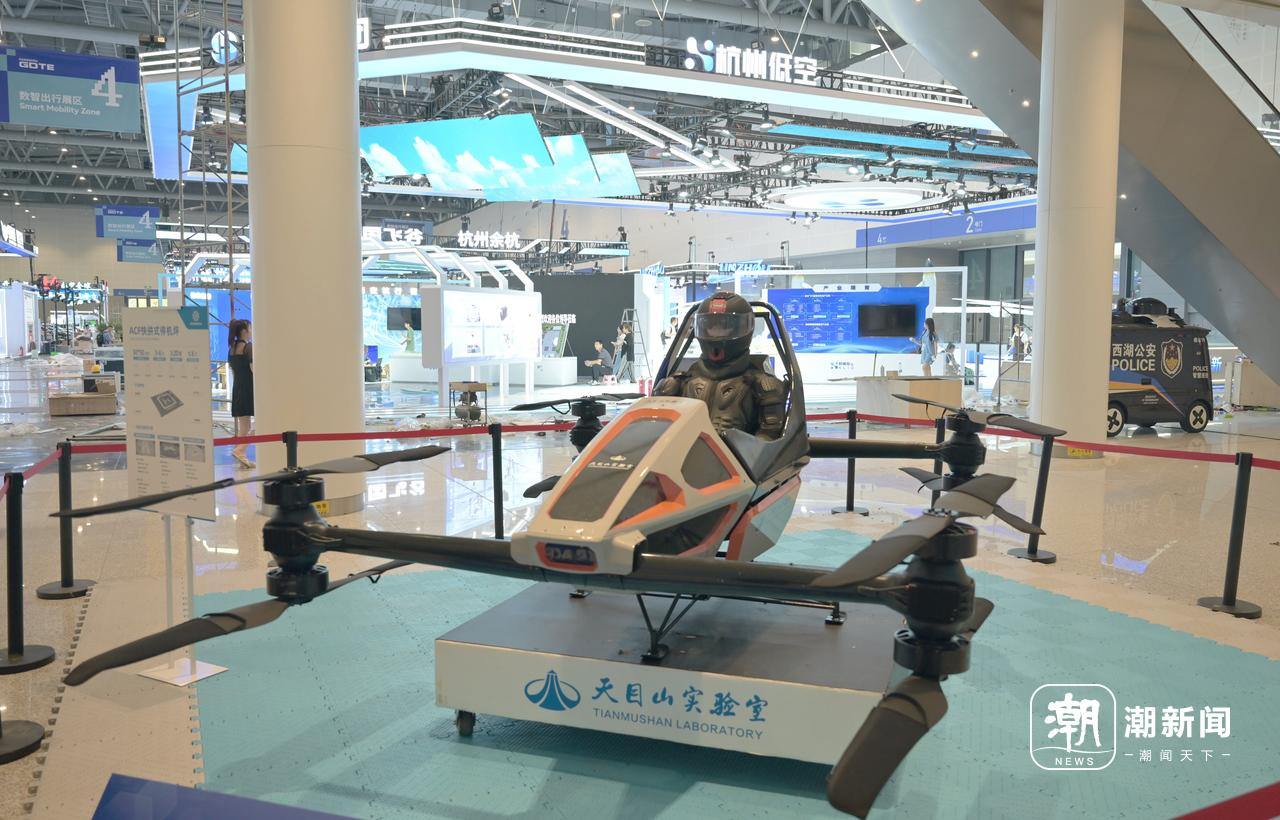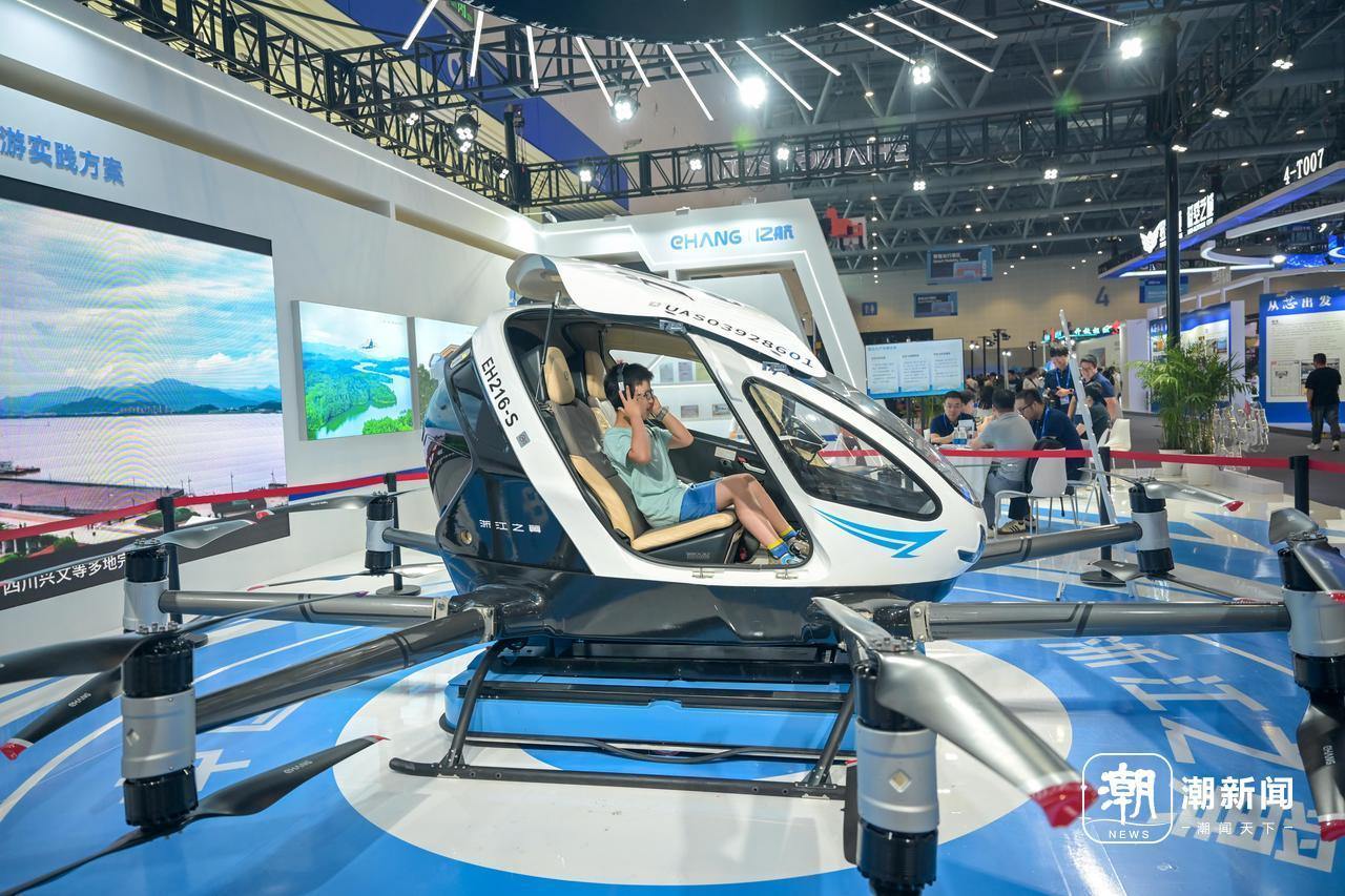 在第四届数贸会数智出行馆内,低空经济展区成为全场焦点,集中展示了一批技术领先的低空飞行产品与解决方案。轻翼航空的岚鹰飞机、沃飞长空的AE200电动垂直起降飞行器、天目山实验室的智能单人飞行器Vortex-F1等创新机型,吸引了大量采购商驻足交流。