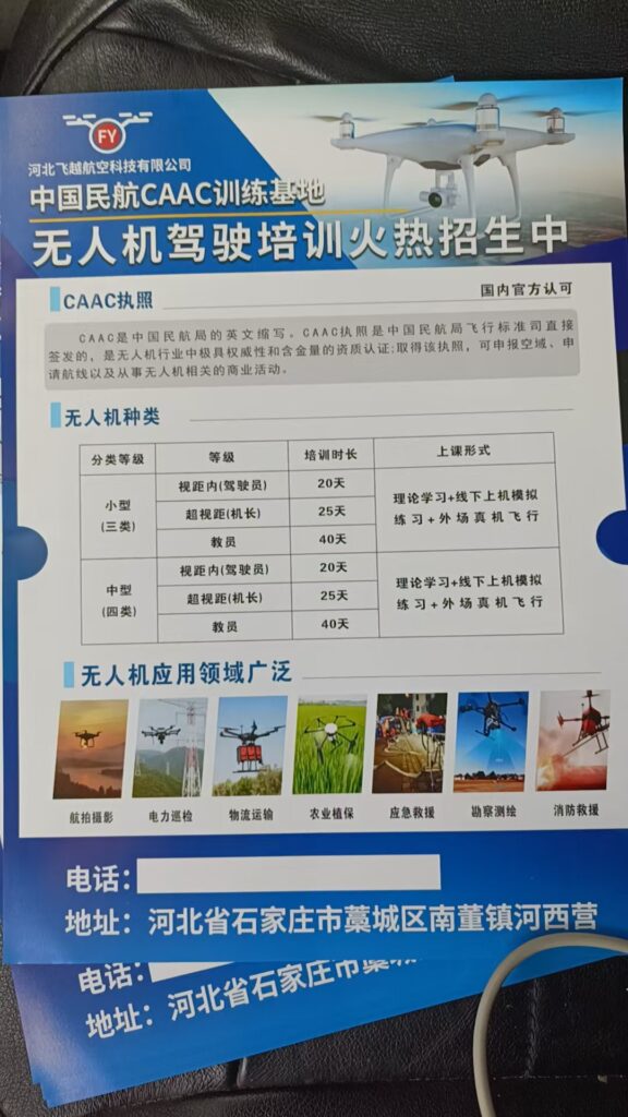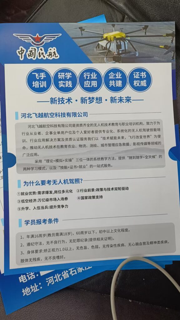 四、服务保障:“技能 + 证书 + 就业” 一站式护航 公司不仅关注学员的技能提升与证书获取,更致力于解决学员的就业需求,提供全周期的服务保障: 技能保障:建立 “学员档案 + 阶段性考核” 机制,每个学习阶段进行实操与理论考核,未通过者免费重修,确保学员真正掌握技能; 证书保障:专属班主任跟进学员考试进度,提供考前冲刺辅导,考试未通过者可免费参加下期培训,直至获取证书; 就业保障:与全国数十家无人机应用企业(如农业科技公司、测绘院、影视制作公司、物流企业等)建立合作关系,定期举办招聘会、推荐就业岗位,为学员搭建就业桥梁;同时为创业学员提供技术支持与资源对接,助力学员开启无人机创业之路。