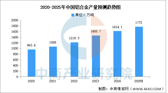 我国是铝合金生产大国,近年来我国铝合金产量稳步增长。中商产业研究院发布的《2025-2030年中国铝合金行业深度分析及发展趋势研究预测报告》显示,2024年中国铝合金产量达1614.1万吨,同比增长9.6%。中商产业研究院分析师预测,2025年中国铝合金产量将增至1772万吨。