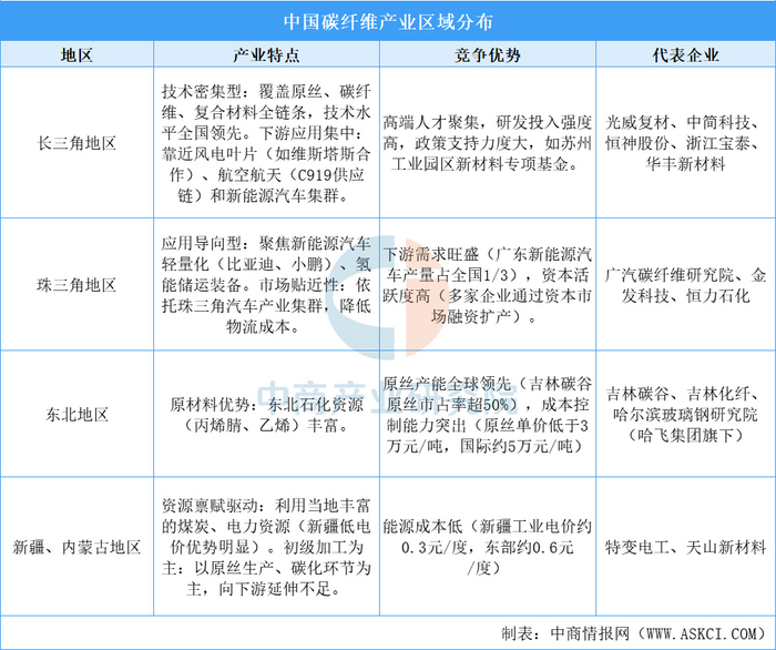 中国碳纤维产业呈现明显的区域集中化特征,主要集中在东部沿海的长三角和珠三角以及东北老工业基地,同时新疆、内蒙古等西部资源型省份加速布局。长三角凭借技术密集型产业链(覆盖原丝、碳纤维、复合材料全链条)和高端人才、政策支持(如苏州工业园区专项基金),聚焦风电叶片、航空航天及新能源汽车领域;珠三角依托新能源汽车产业集群(比亚迪、小鹏)和资本活跃度,以轻量化、氢能储运装备为核心应用场景;东北地区依托石化资源(丙烯腈、乙烯)和政策倾斜,以吉林碳谷为代表的企业在全球原丝市场占据主导地位(市占率超50%),成本控制能力突出(原丝单价低于3万元/吨);西部则依托煤炭、电力等低价资源和政府规划(如内蒙古“十四五”产业规划),以原丝生产、碳化等初级加工为主,但下游延伸不足。