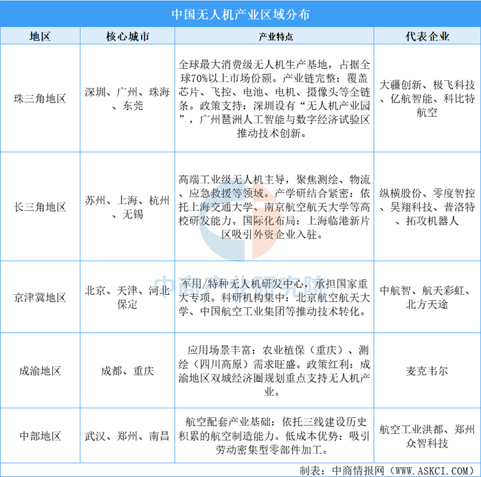 中国无人机产业形成了以珠三角、长三角、京津冀为核心,成渝、中部地区协同发展的空间格局。珠三角地区是全球最大消费级无人机生产基地,占据全球70%以上市场份额。产业链完整,覆盖芯片、飞控、电池、电机、摄像头等全链条。长三角地区高端工业级无人机主导,聚焦测绘、物流、应急救援等领域。依托上海交通大学、南京航空航天大学等高校研发能力,产学研结合紧密。京津冀地区是军用/特种无人机研发中心,承担国家重大专项。北京航空航天大学、中国航空工业集团等推动技术转化。成渝地区农业植保(重庆)、测绘(四川高原)需求旺盛。中部地区航空配套产业基础较好,可依托三线建设历史积累的航空制造能力,发展无人机产业。这些地区不仅拥有完善的产业链和科技创新环境,还积极推动无人机与智慧城市、智慧交通等领域的融合发展,进一步拓展了无人机的应用场景和市场空间。