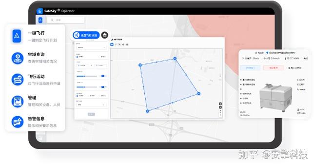 SafeSky®Operator飞行端是连接无人机运行和无人机交通管理平台的桥梁,帮助运行人接入无人机交通管理服务,更轻松的进行飞行活动的规划、申报和管理,并在运行时提供实时的评估和信息服务,使飞行更加安全且高效。配合DroneID网络式运行标签和安擎自主飞行机巢以及专为超视距运行而定制的硬件设备,将无人机的运营效益发挥至最大。